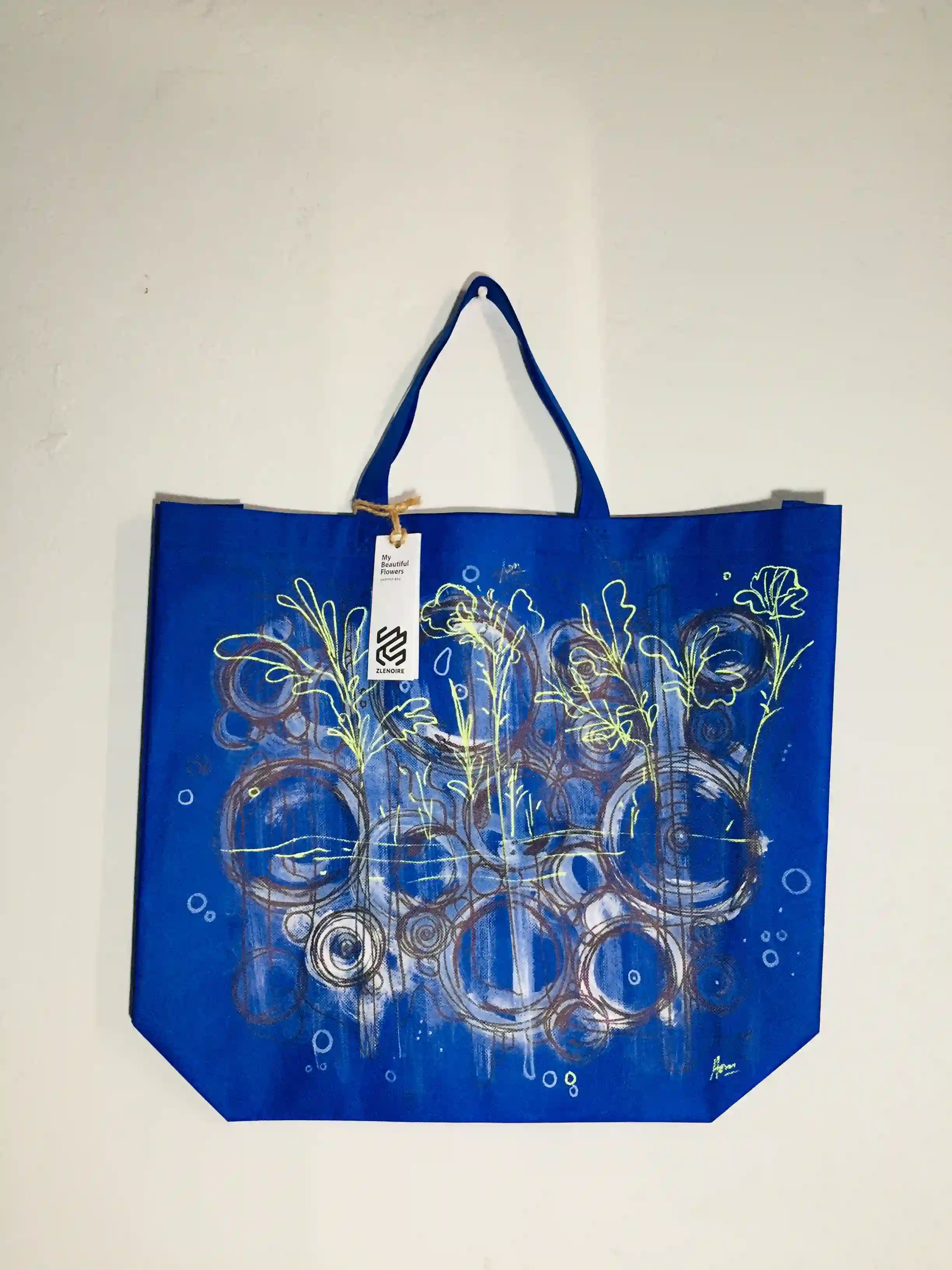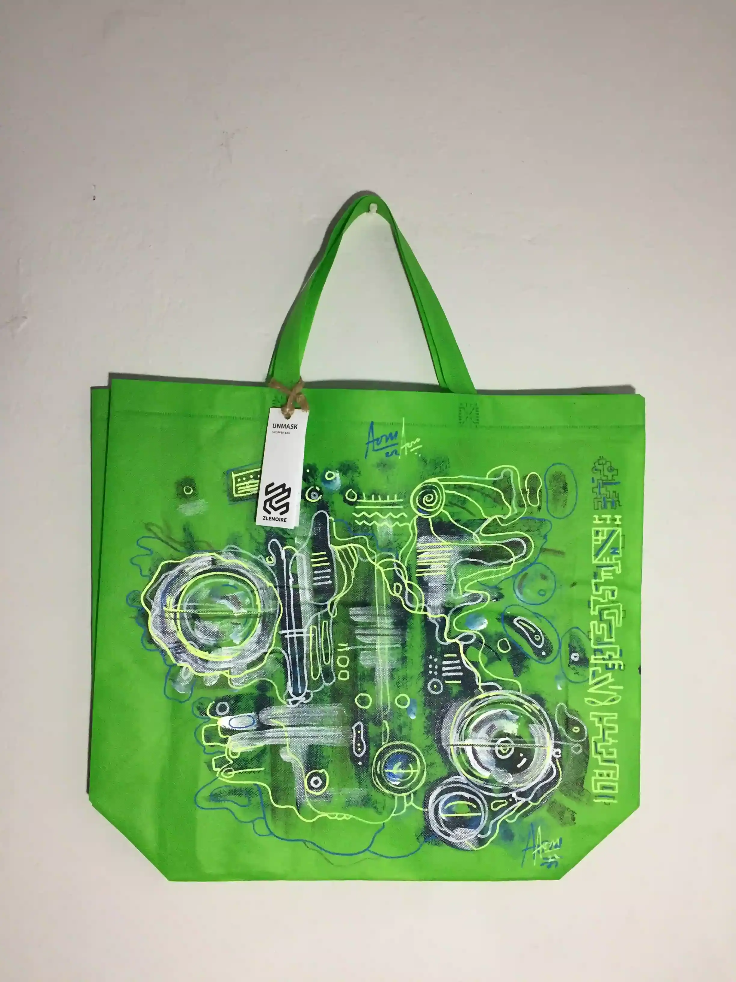 The idea of enjoying the beauty of the bag by displaying it as an artwork in your hall is a unique and creative concept. This not only emphasises the bag's aesthetic value but also turns it into a decorative element for your living space. It's a way to integrate sustainability into your lifestyle while adding an artistic touch to your home.